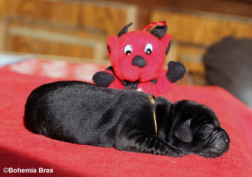 Datum narození: 05.02.2025 - 3 štěňátka = 2 fenky + 1 pejsek černý pejsek - LABAKAN of BOHEMIA BRAS černá fenka - LADYBEETLE of BOHEMIA BRAS černá fenka - LAI-LO-LAI of BOHEMIA BRAS (zůstává doma) | ||
