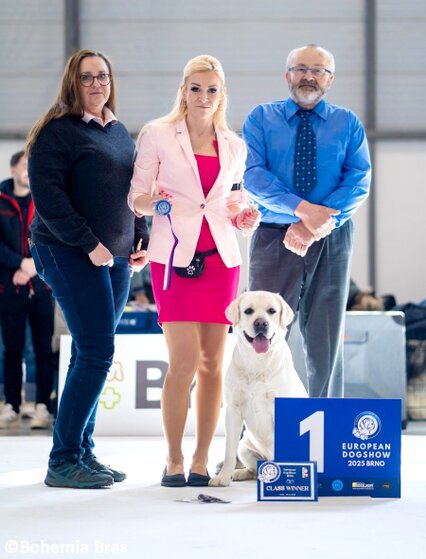 We are very happy and our thanks to both judges. To Mr. Peter Rehanek for the award the 1. place and title BOB in the breed LABRADOR RETRIEVER and to Mrs. Zdenka Jílková for the 1. place in VIII. group FCI and award of the title BIG.