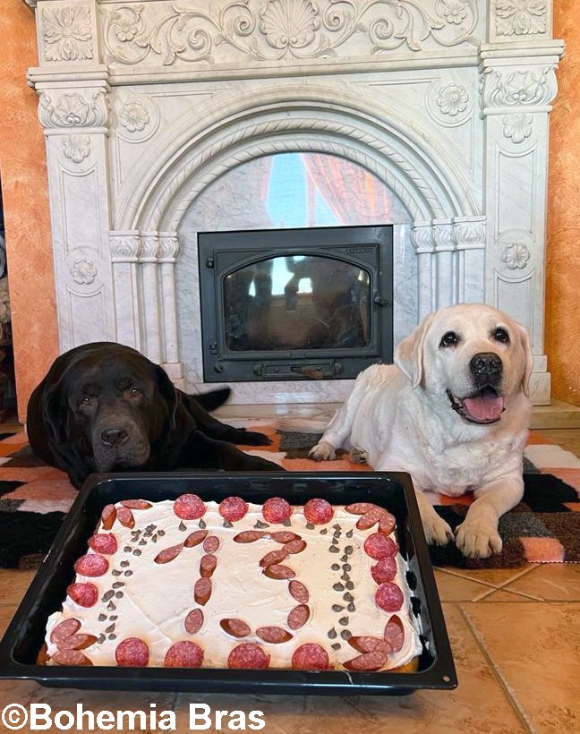 28.01.2024 - MESSINKA´S 13th BIRTHDAY And while the BOHEMIA BRAS team represented successfully in Brno, we, who were at home looking after the puppies, celebrated the 13th birthday of our amazing Messinka with all the other dogs. Messinka, we wish you strong health and an ever-great appetite for many years to come.