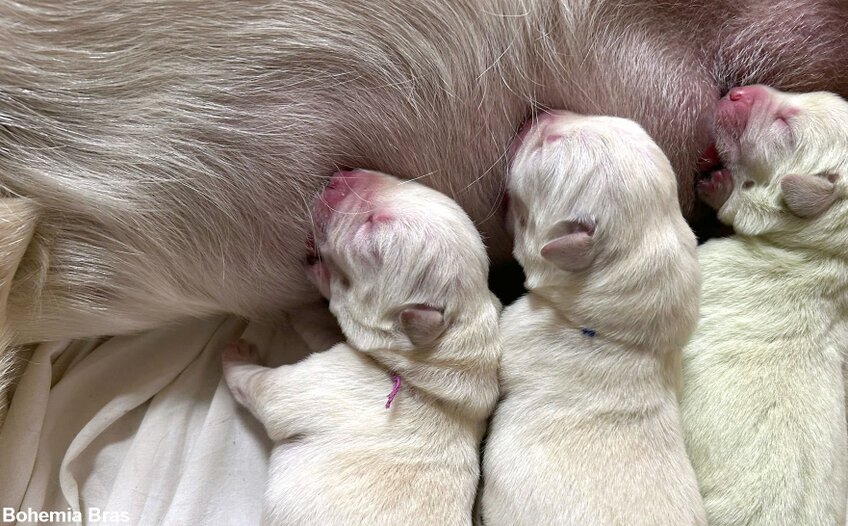 CZ Champion SK Champion WAGGA-WAGGA of BOHEMIA BRAS Health tests: Hips: A Ellbows: 0/0 PRA/prcd: N/N Clear (DDC DNACenter) EIC: N/N (DDC DNACenter) HNPK: N/M (DDC DNACenter) DM: N/N (DDC DNACenter) CNM: N/N (DDC DNACenter) Cystinuria: N/N (DDC DNACenter) | CZ Champion JUICY BUM-BUM of BOHEMIA BRAS Health tests: Hips: A, Elbows: 0/0 PRA/prcd: N/N Clear (parental) EIC: N/N (parental) DM: N/N (parental) CNM: N/N (parental) Cystinuria: N/N (parental) | |